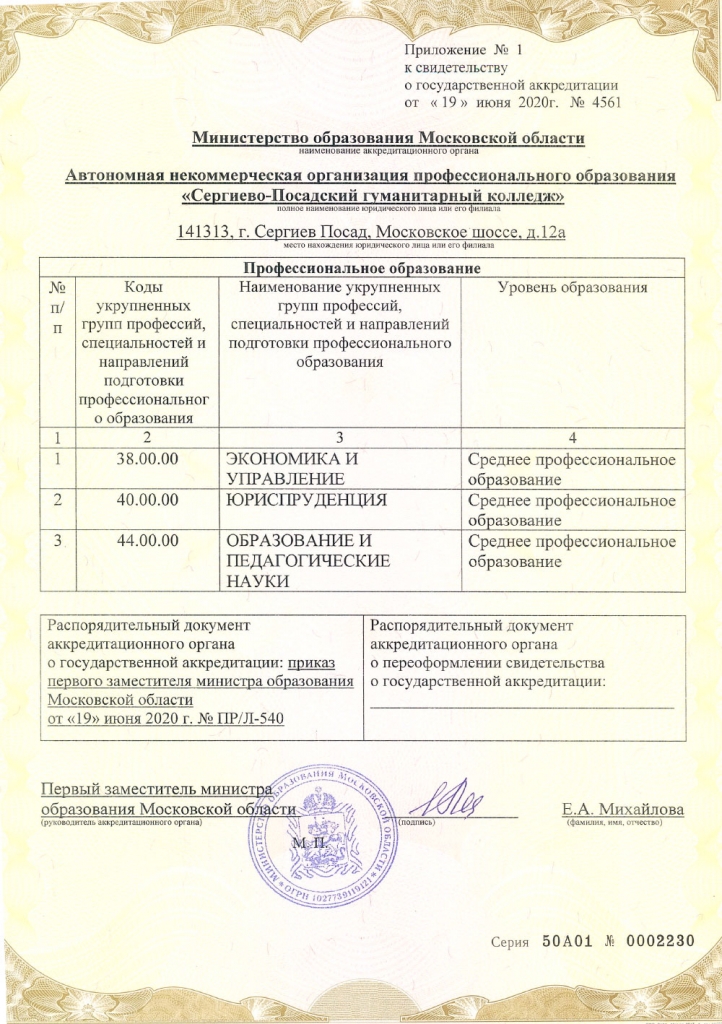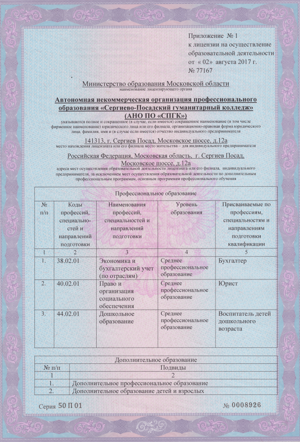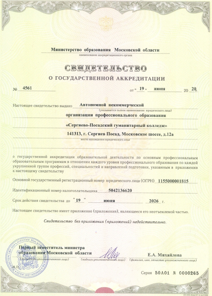 Автономная некоммерческая организация профессионального образования «Сергиево-Посадский гуманитарный колледж»